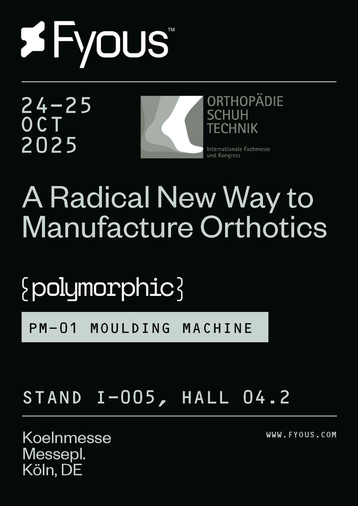 Fyous are excited to unveil the future of manufacturing orthopedic footwear and orthotics more generally. PolyMorphic Moulding enables the manufacturing of bespoke products such as shoe lasts in a fully automated fashion.